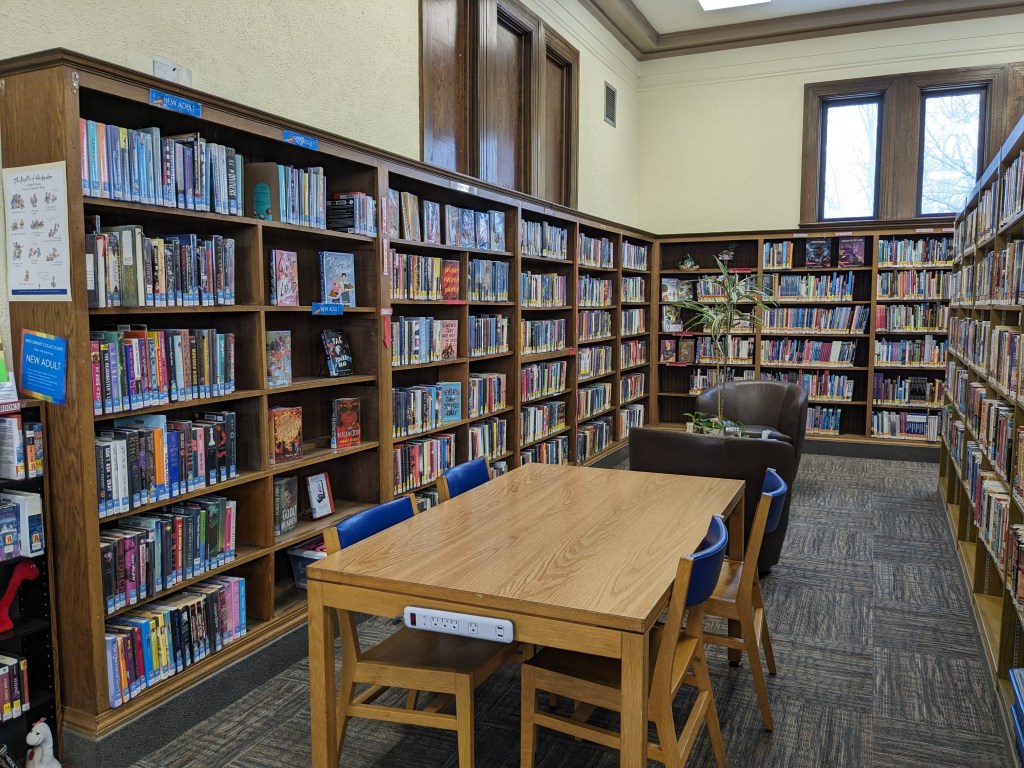 New Adult now begins in the very first wall column when you enter the library from the Park Street entrance. This means that New Adult has a display area separate from Young Adult.