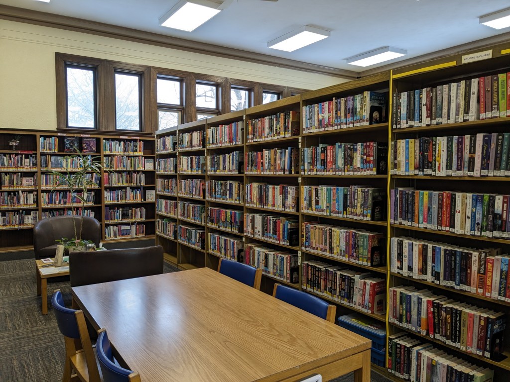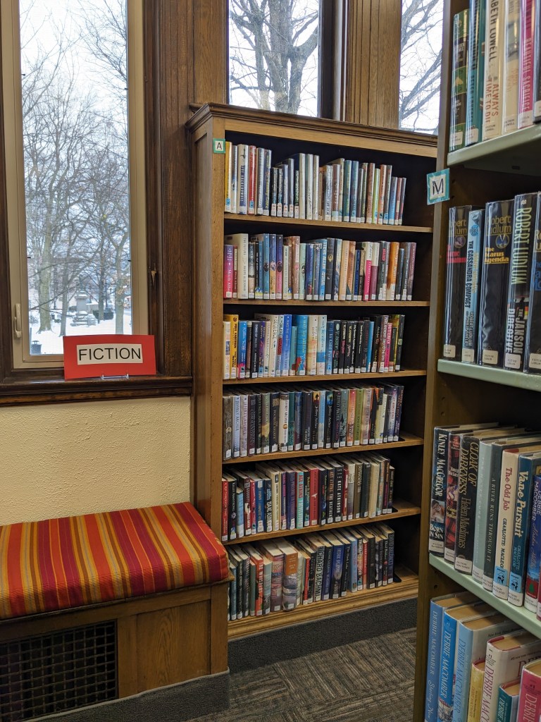 We are continuing to weed and repair fiction. As we pull books to assess their condition we may replace popular titles. If a book hasn’t circulated in a number of years (many have not circulated since 2013! That’s 11 years of sitting on the shelf unread) it is withdrawn and put in our book sale. Our book sale will be the week of April 15th this year.